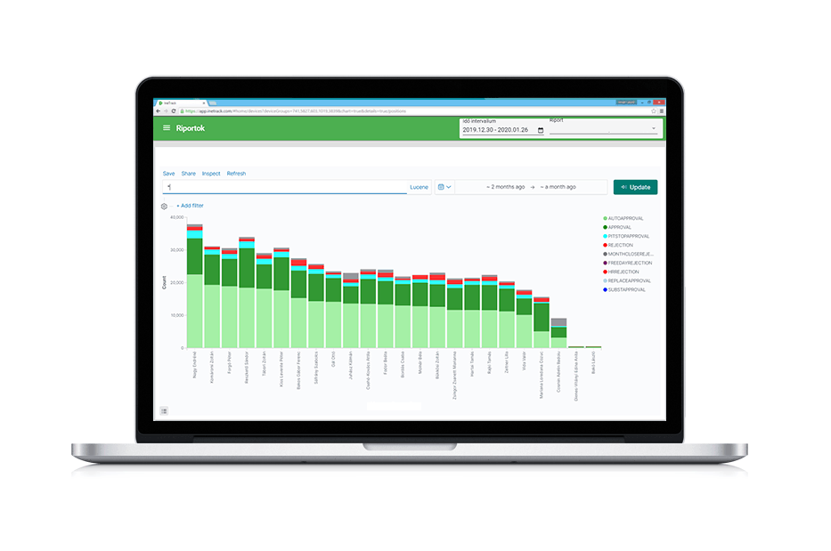 Platformunkat kifejezetten nagy mennyiségű adat feldolgozására és vizualizálására terveztük. Üzleti utazásokhoz, munkaidőhöz, ügyféllátogatásokhoz kapcsolódó egyedi kimutatásokat készítünk.